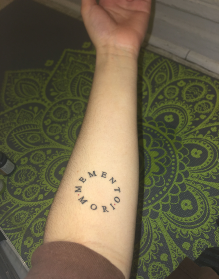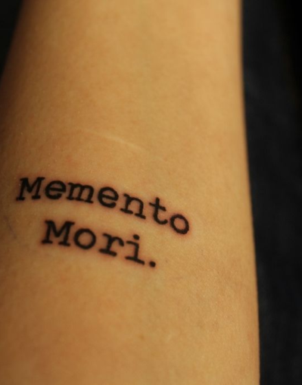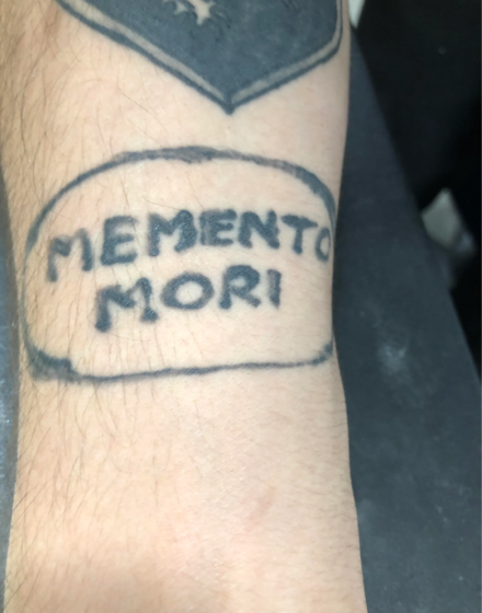 The phrase Memento mori from Latin is Remember death. It became closely associated with Mac Miller after the release of the video for the song Self Care. In it, the artist lies in a coffin and writes Memento Mori on its lid.