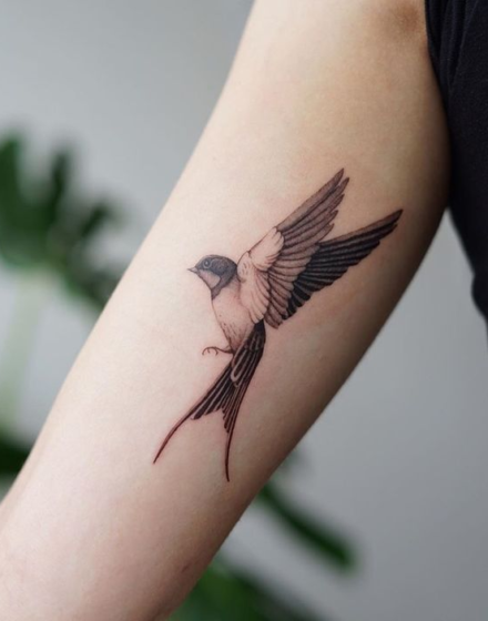 In Greek mythology, the swallow was associated with the goddess Athena. It was believed that if a person has a tattoo with the image of this bird, they will certainly have love and happiness in his life.