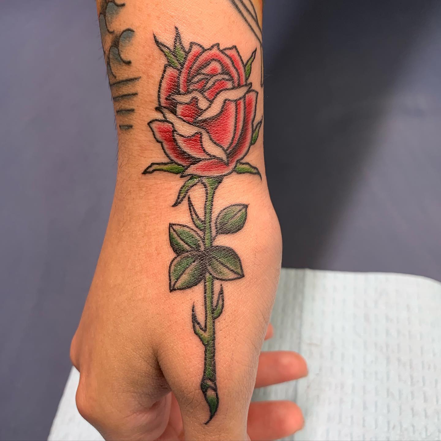 Brooke Farmer started her journey in tattooing in 2012. Her artwork features depictions of insects and floral prints. She creates tattoos at Mom’s Tattoos in Austin, Texas.
