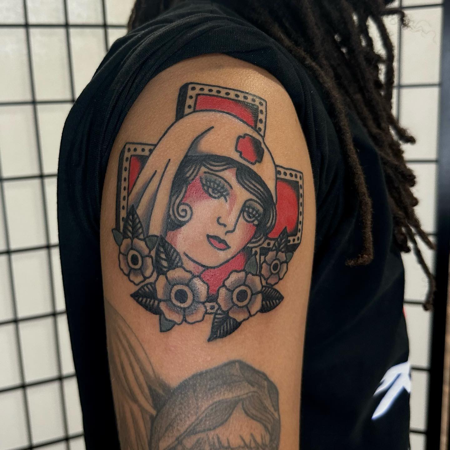 Dylan Tinsley is a tattooer at Royal Tiger Tattoo in Austin, Texas. The tattooist’s portfolio includes works in black and grey, traditional, and bold styles. Dylan’s designs often reflect a fascination with classic tattoo themes, featuring images of ships, female figures, animals, and more.