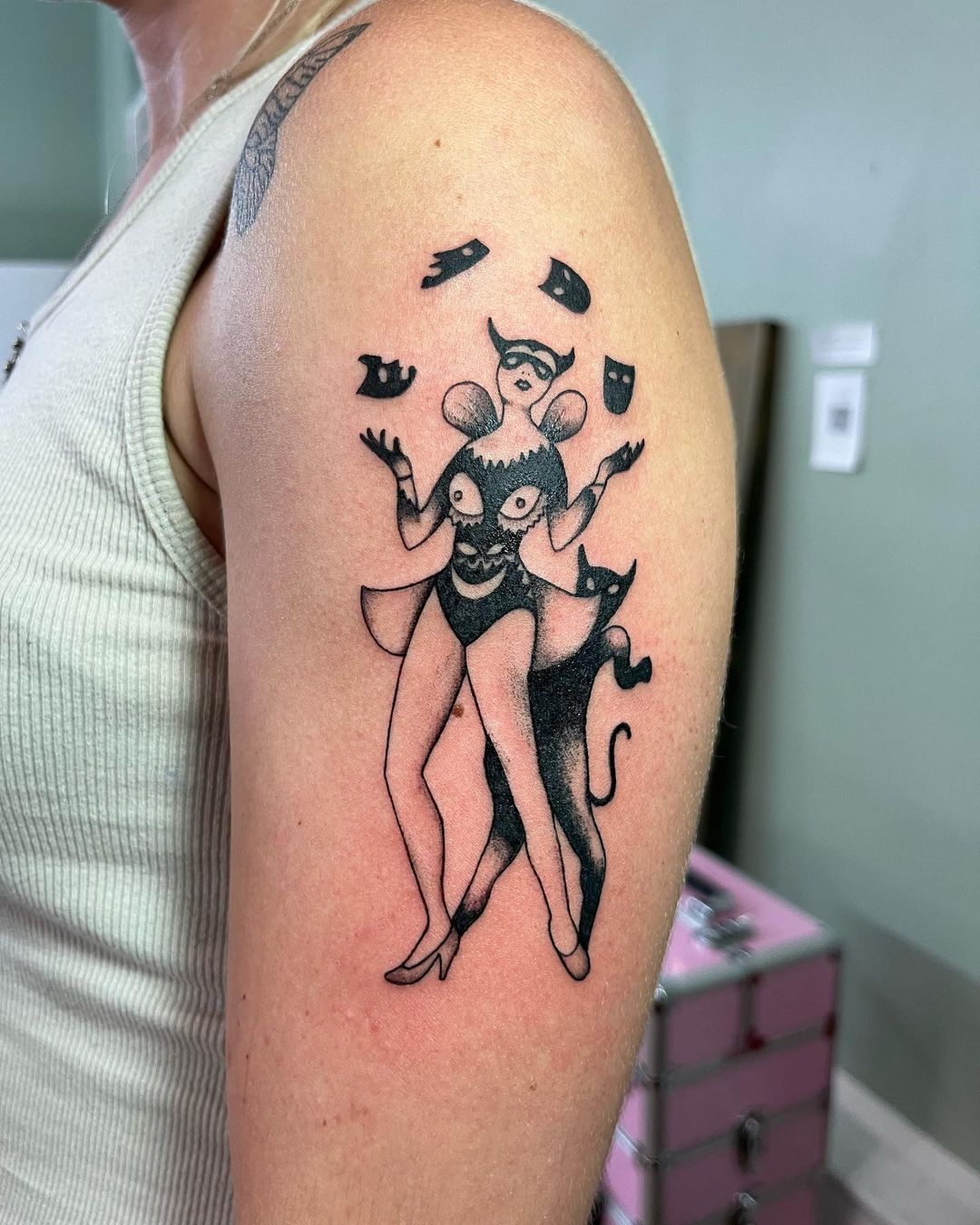 Kat Guinn began her journey in the tattoo industry in 2021. In 2023, she joined the Alchemy Tattoo Collective team. Her tattooing style is diverse, with a preference for black and grey, and she has a particular fondness for designs that bring laughter. Kat is skilled in cover-up, scar camouflage, and tattoo reworks. Away from tattooing, Kat enjoys nature, thrift shopping, and spending time with her three cats.