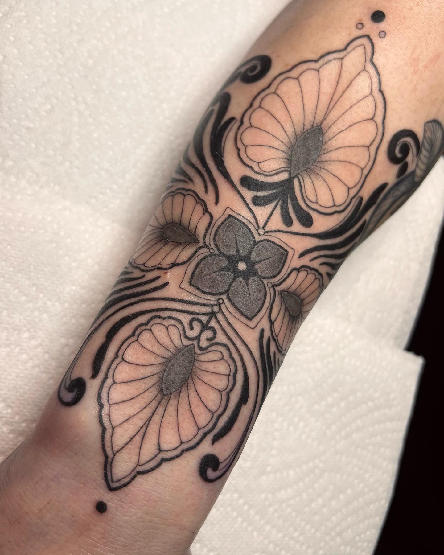Maya Blossom is a tattoo artist based in London. Maya is an indispensable part of the Vagabond Tattoo Studio team and excels as a specialist in fine line, neo-traditional, and floral print tattoo styles.